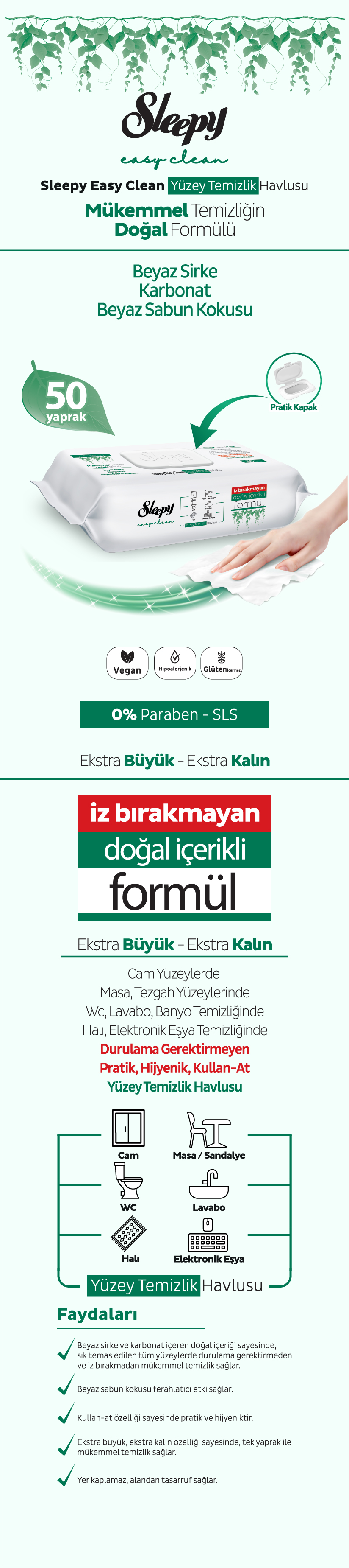 Sleepy Easy Clean Yüzey Temizlik Havlusu&Mendili 6X50 (300 Yaprak)
